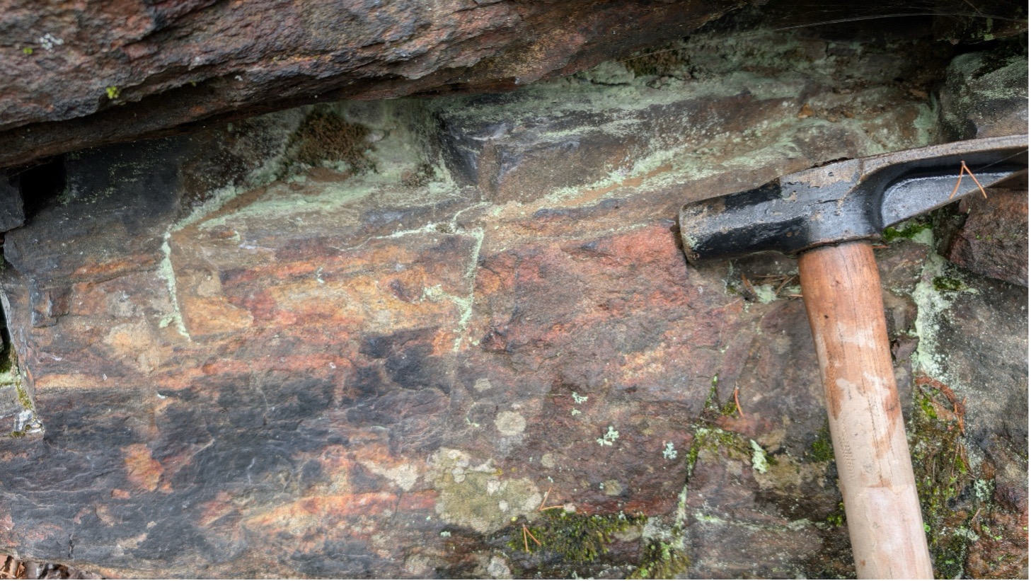 Figure 4. Oxidized metasediment outcrop with hematite and limonite alteration