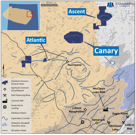 Figure 1. Overview of Standard Uranium’s northeastern Athabasca Basin projects, highlighting the Canary Project.